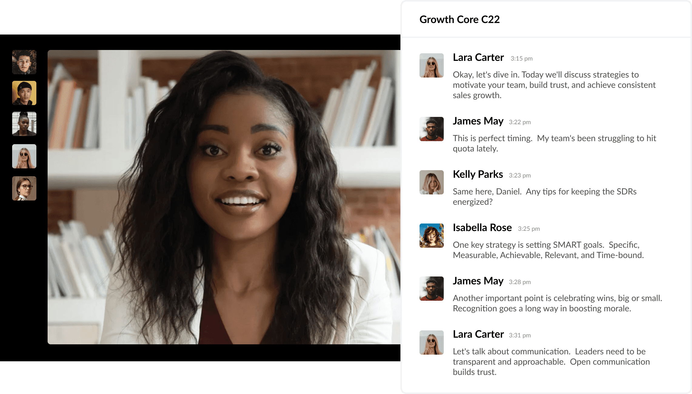 Members join open and private sessions like group chats, masterclasses, 1:1 planning, demo days, office hours, and deep dives with peers.